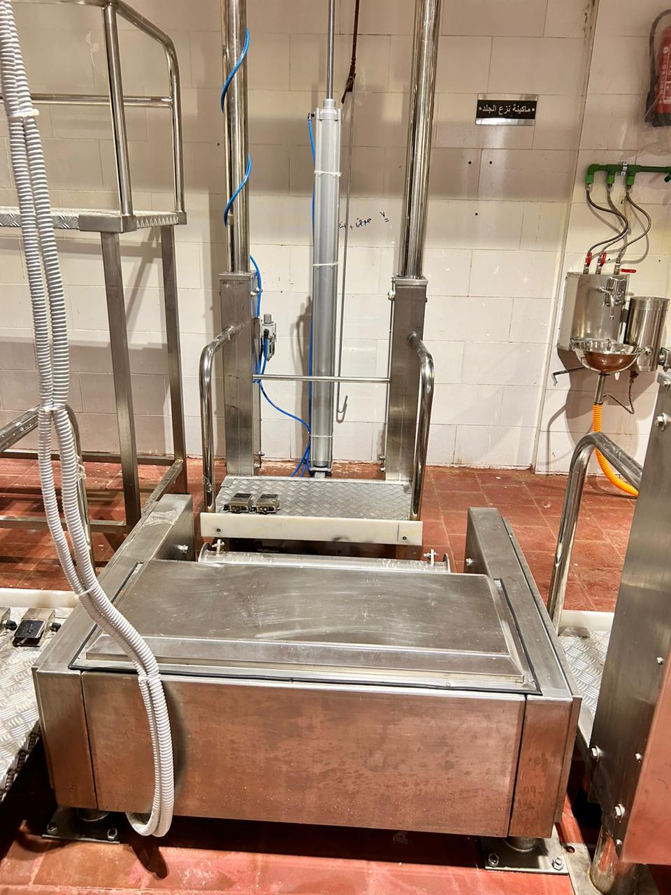 صناعة مصرية بالكامل مصنوعة من ستانلس ستيل عيار 304 ومزودة برول وسلاسل لسحب الجلد  وموتور  ايطالي او تركي بالجيربوكس قدرة 4كيلو /واط ومزودة بعدد 2 منصة متحركة